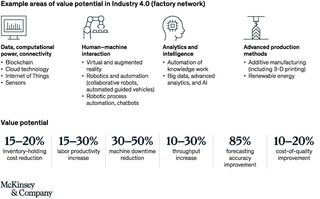 L’adoption des technologies d’Industrie 4.0 peut accroître la productivité du travail de 15 à 30 %.