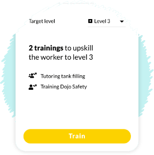 Precisa de um trabalhador com formação para um posto de trabalho? Selecione um trabalhador, escolha o nível que ele precisa atingir e clique em “Formação”. Alex calcula e cria toda a formação necessária para atingir o seu objetivo.